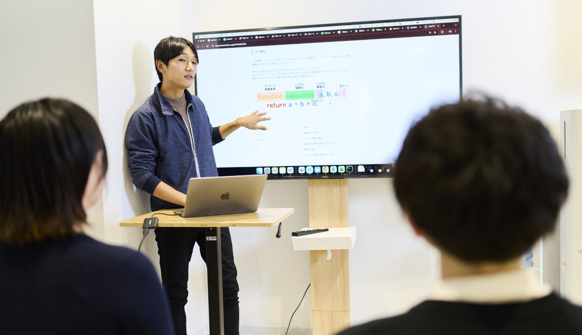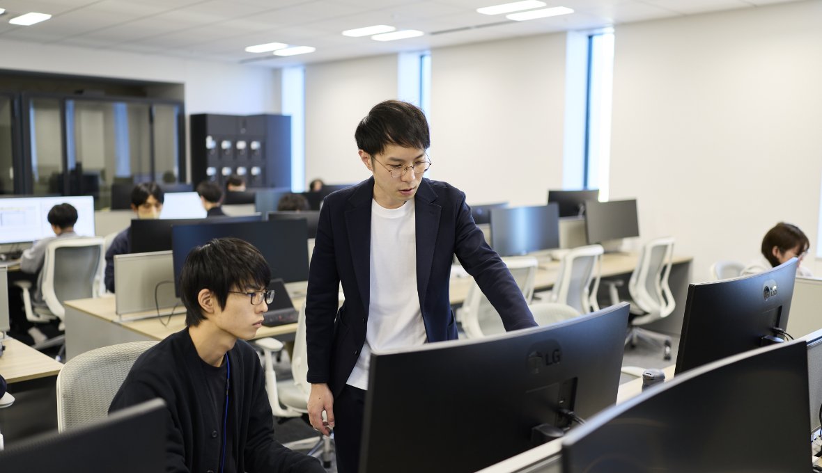 エンジニアのレベルや役割に合わせた外部研修も実施しています。例えば新卒社員は、プログラミングの基礎学習に始まりアプリ開発のグループワークまでを実施する研修に参加し、社内外で基本的なITスキルを養います。技術的な研修以外にも、チームや組織での仕事術、リーダーにステップアップするための研修や、リーダークラスの人材にはリーダーシップとチームマネジメントを学ぶ研修を用意し、管理職として必要なスキルを習得するための機会を提供。技術研修だけでなく、チームや組織に貢献する姿勢を学ぶプログラムも用意しています。個々の役割に応じた能力開発を支援し、スキルアップを通じて成功体験を実現できる環境を整えています。